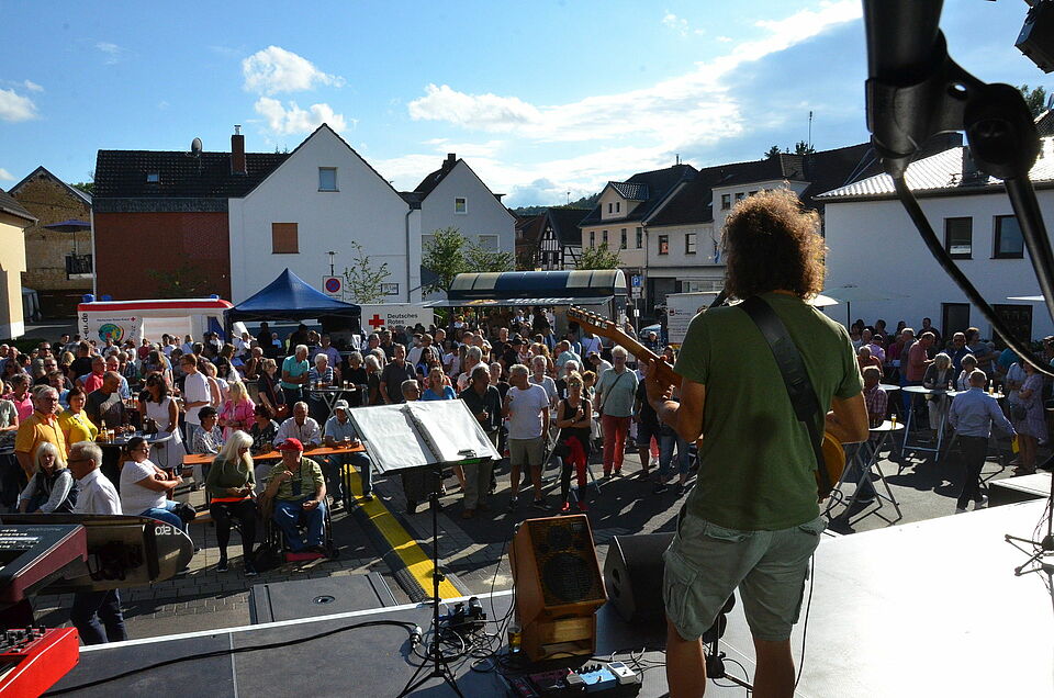 Die Band trat das erste Mal in Kommern auf. Moderator Björn Schäfer hatte mit seiner Vermutung, der Platz würde „beben“, nicht unrecht. Denn als die ersten Klänge des Liedes „Shape of you“ ertönten, gefolgt von „Simply the best“, war das Publikum bereits Feuer und Flamme. Im Repertoire hatte die Band Stücke wie beispielsweise „Ein Hoch auf uns“, „Don´t stop believin´“, „Komet“ und vieles mehr.