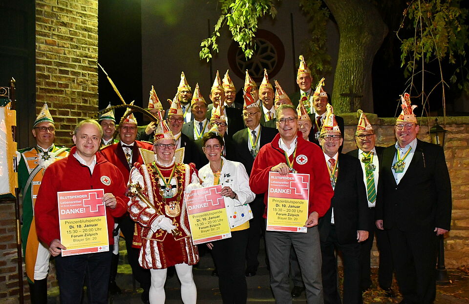 Es handelte sich um ein Werbebild für die nächste Prinzen- und Karnevalisten-Blutspende am Dienstag, 10. Januar, von 15.30 bis 20 Uhr im Forum Zülpich, Blayer Straße. Mit dabei waren natürlich auch der stellvertretende Rotkreuz-Vorsitzende und Bürgermeister Ulf Hürtgen sowie Rotkreuz-Gemeinschaftsleiter Thomas Heinen.