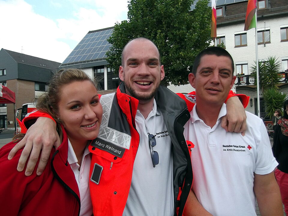 Und plötzlich muss es ganz schnell gehen. Ein Vater kommt zu den Rotkreuzlern. Sein Kind hat sich schwer am Knöchel verletzt. Sofort rüsten sich die Ersthelfer mit einem Notfallrucksack und leisten Erste Hilfe. Ein Rettungswagen wird angefordert. „Ein Arzt wird jetzt entscheiden, wie schwer die Verletzung ist“, sagt Heinen. Schnelle Hilfe, wenn es darauf an kommt. Auch dafür sorgen auf der Landesgartenschau die vielen freiwilligen Helfer. Noch bis zum 12. Oktober, dem vorerst letzten Tag der Landesgartenschau, besetzt das Rote Kreuz den Sanitätsdienst und sorgt für die Sicherheit der Besucher.