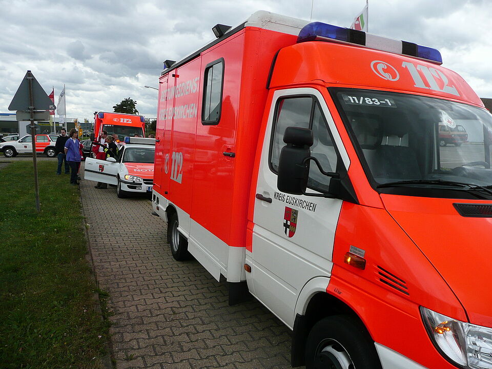 Bild DRK ZR | In einer Nebenstraße standen Fahrzeuge des Rettungsdienstes des Kreises Euskirchen in Bereitschaft.