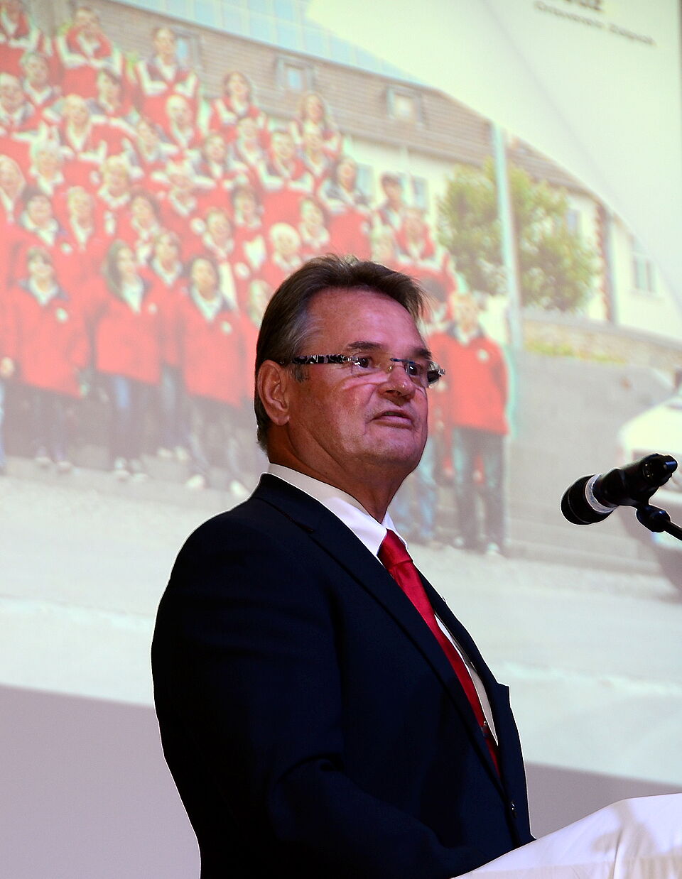 Hauptredner war Dr. Volkmar Schön, der dem 171 aktive und 830 Fördermitglieder starken Ortsverein die Glückwünsche des Rotkreuz-Generalsekretariates Berlin überbrachte. Der Mann, der wie Lothar Henrich schon als Junge beim Jugendrotkreuz anfing und sich langsam, aber zielstrebig an immer größer werdende Aufgaben herantraute, verstand es dabei, Rotkreuzeinsätze in Kriegs- und Krisengebieten der ganzen Welt und die Arbeit der Rotkreuzler vor Ort in Zülpich und Umgebung in Verbindung zu bringen.
