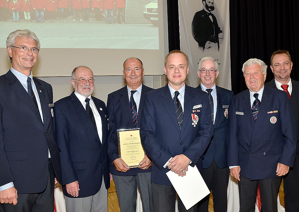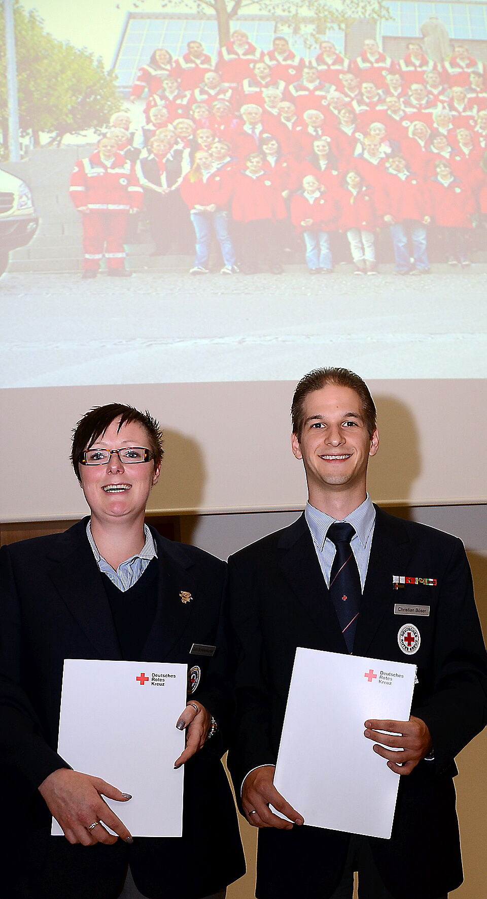 Beim Festkommers im „Forum“ zu Gruppenführern ernannt wurden Gaby Schleiermacher und Christian Böser. Josef Trimborn wurde für 50 Jahre, Dr. Heiner Schierbaum für 35 Jahre sowie Alexandra und Michael Offermann und Thorsten Mette für 25 Jahre aktive Dienstjahre im Roten Kreuz der Römerstadt ausgezeichnet.