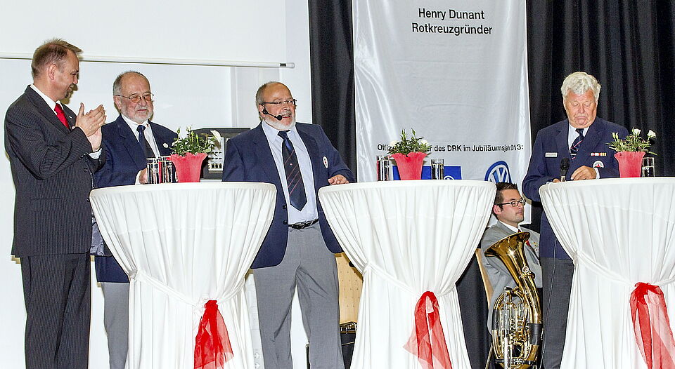 In der ersten Talkrunde mit Manfred Lang legten Rotkreuz-Ortsvereinsvorsitzender Lothar Henrich, Kreis-DRK-Chef Erwin Doppelfeld und DRK-Vizepräsident Dr. Volkmar Schön eindrucksvoll Zeugnis ab für die Sinnhaftigkeit des Einsatzes im und für das Rote Kreuz. Wobei Doppelfeld und Schön neben der hohen humanitären Funktion des Roten Kreuzes für Dritte auch die Vorzüge für die Rotkreuzler selbst herausstellten.
