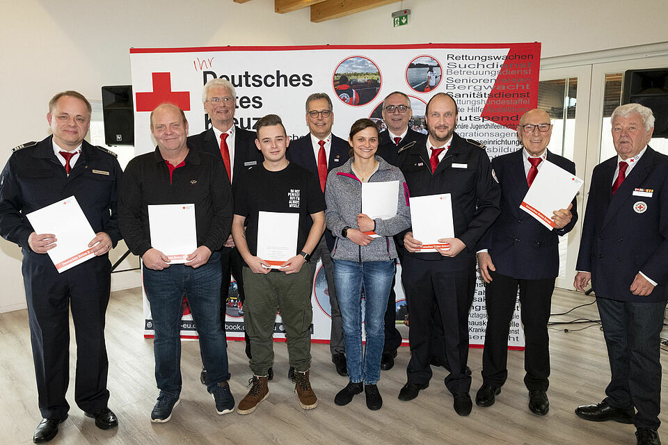 Geehrte wurde Heinen zudem für 35 Jahre als aktiver Helfer im DRK. Getoppt wurde er lediglich von Gemeinschaftsarzt Dr. Heiner Schierbaum, der für 45-jährigen aktiven Dienst ausgezeichnet wurde. Eine weitere Urkunde gab es für Patrick Dost, der seit 30 Jahren dabei ist. Für ihre zehnjährige ehrenamtliche Mitarbeit beim DRK wurde Martina Prinz ausgezeichnet und Jürgen Haas sowie Christian Olschewski erhielten ihre Ehrungen für jeweils fünf Dienstjahre.