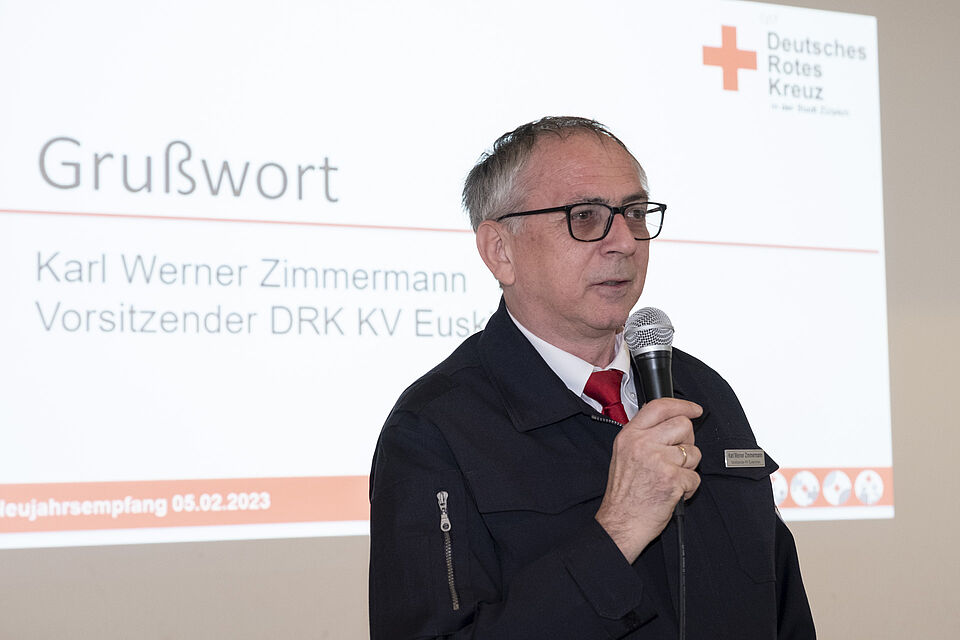 Dieses Engagement freute nicht zuletzt auch den Vorsitzenden des DRK Kreisverbands Euskirchen, Karl Werner Zimmermann. Der hatte in seinem Grußwort ebenso wie Lothar Henrich betont: „Schön, dass Sie alle hier sind, schön, dass wir uns hier sehen und wieder Gelegenheit haben, uns persönlich auszutauschen. Das gehört zu einer Familie, zu unserer Rotkreuz-Familie, einfach dazu.“