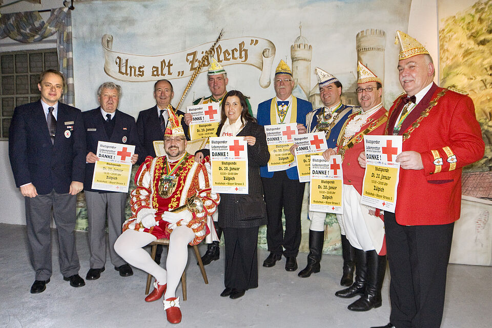 Heinen: „Auch wenn gefeiert wird, gibt es Notoperationen, Unfälle, dringende Krebstherapien. Für all diese lebensbedrohlichen Fälle werden Blutkonserven benötigt.“ Mit der tatkräftigen Hilfe der Karnevalisten vertraut er darauf, möglichst viele Zülpicher für die Blutspende am 20. Januar zu mobilisieren. Denn immer wieder und gerade zu den Feiertagen und in der Urlaubszeit werden Blutkonserven knapp.