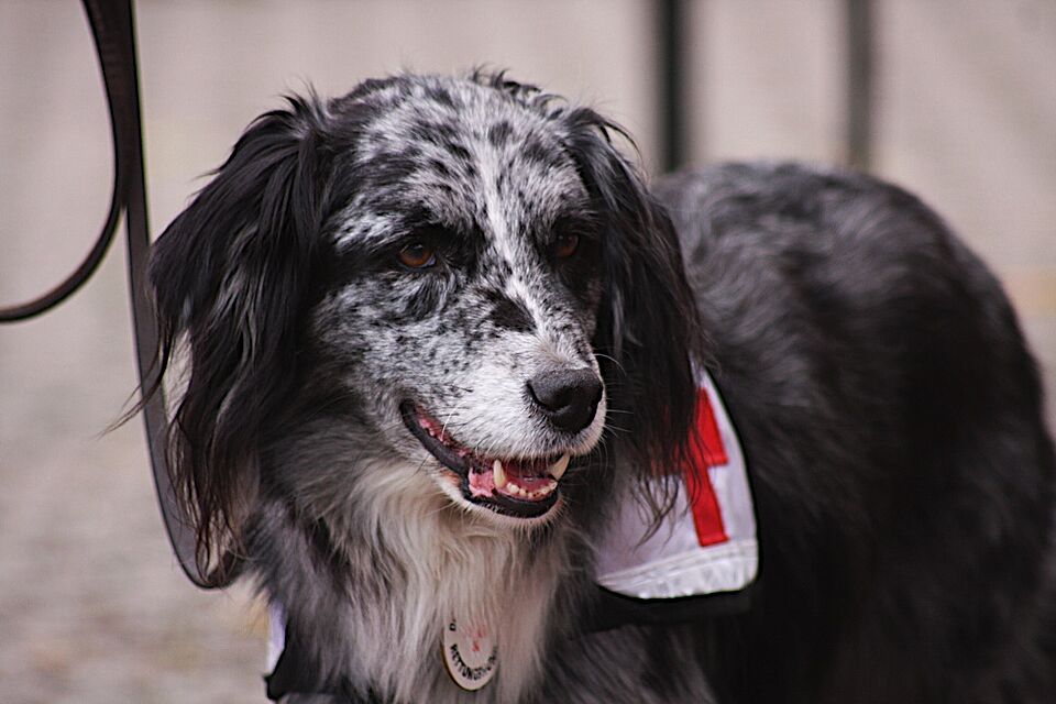 Glückwunsch an unser erfahrenes Rettungshundeflächeteam Diana mit ihrer Australian-Shepherd Hündin „Jill“, die den Jungen nach sieben Minuten Suchzeit finden konnte.