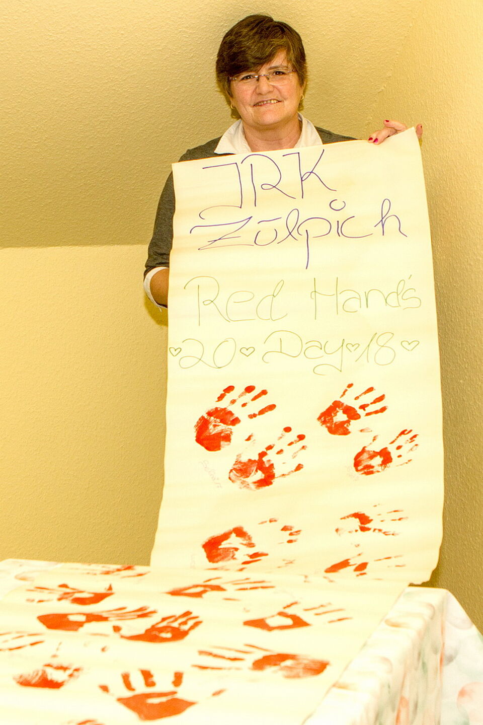 Einer besonderen Aktion hat sich das Zülpicher Jugendrotkreuz angeschlossen. Die Gruppe beteiligt sich am „Red Hand Day“. „Das ist eine weltweite Initiative gegen den Missbrauch von Kindern als Soldaten“, erklärt Brigitte Kremer die Aktion, die es seit mehr als zehn Jahren gibt. Hunderttausende rote Handabdrücke wurden schon in mehr als 50 Ländern gesammelt und an Politiker und Verantwortliche übergeben, darunter der ehemalige UN-Generalsekretär Ban Ki-moon.