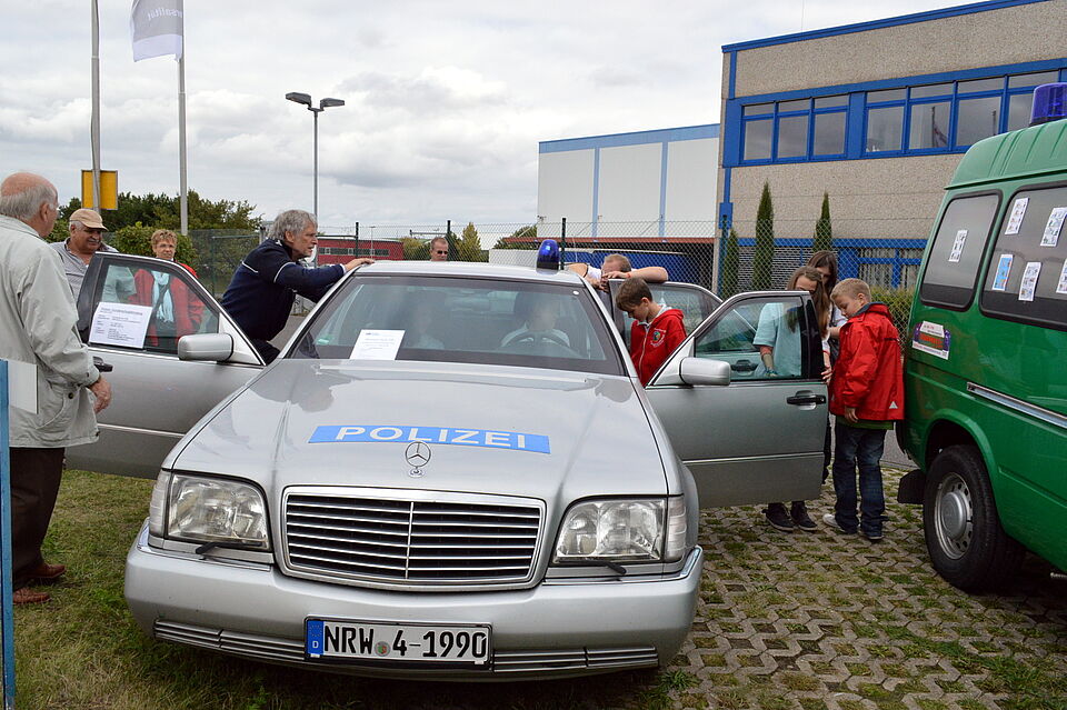 Diese Gelegenheit nutzten die Besucher am Sonntag und kamen in Scharen ins Industriegebiet. Eine Fahrzeugausstellung rechts und links der teilweise gesperrten Industriestraße kündigte bereits einige hundert Meter vor dem Zentrum an, dass hier etwas Besonderes stattfand. Nicht nur die Rotkreuzler selbst präsentierten ihre Einsatzfahrzeuge vom Rettungswagen bis zum Schnellboot der Wasserwacht. Auch Polizei und Bundeswehr beteiligten sich mit außergewöhnlichen Einsatzfahrzeugen an der Schau. Die angekündigte Landung eines Rettungshubschraubers der Bundeswehr konnte zwar nicht stattfinden, weil der Helikopter zu einem Einsatz abkommandiert worden war. Stattdessen „half“ jedoch kurzfristig die Polizei aus und überflog das Gelände mehrfach in niedriger Höhe.