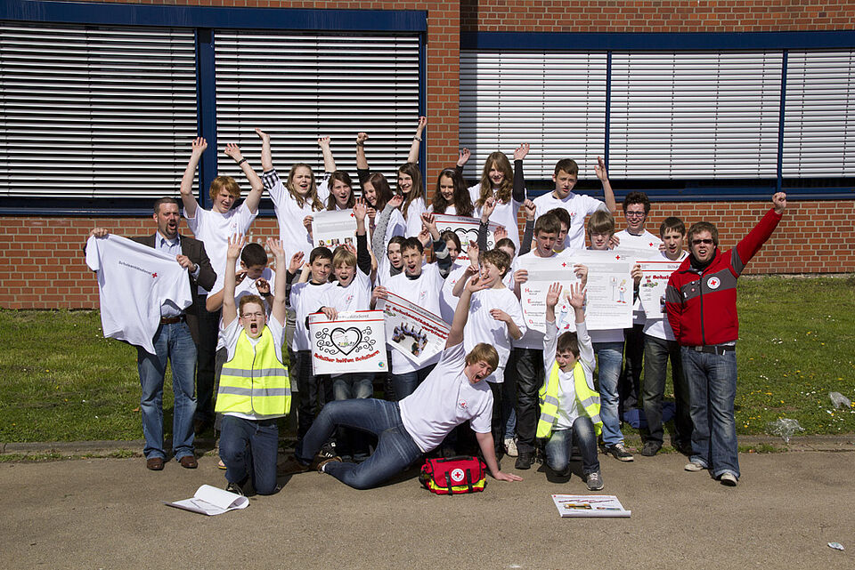 Die neuen Schulsanitäter: Leonie Dissemond, Alexander Badzinski, Lukas Eich, Tim Schiffman, Laura Wolff, Johanna Oppermann, Verena Porschen, Alina Kämmerling, Kristina Bocharov, Dominik Rhien, Robert Bergmann, Ronja Gaul, Laura Schian, Elena Mews, Laura Pannier, Jan Matheja, Jan Rudolph, Markus Vey, Marius Blumenthal, Marius Braun, Isabelle Kann, Ugurcan Ceylan, Philipp Ruland und Robin Pütz