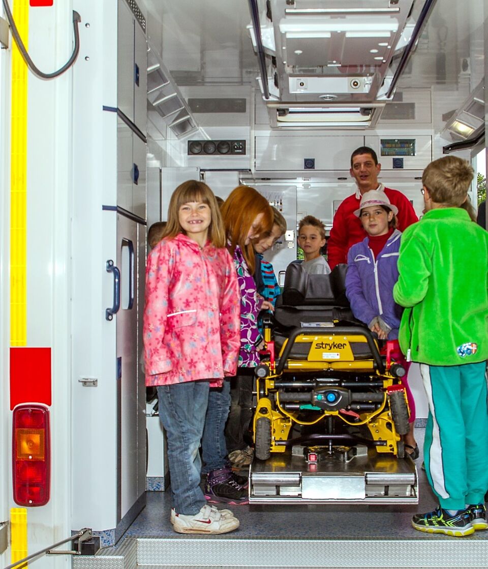Das vierte Schuljahr lernte dagegen bereits das „große Einmaleins“ der Ersten Hilfe. Dazu gehörte beispielsweise auch, eine stärkere Blutung zu stillen und die Erstversorgung von Kopf- und Platzwunden sowie Knochenbrüchen. Neben Theorie und Praxis war der Blick hinter die Kulissen der Rotkreuz-Rettungsfahrzeuge das spannende Highlight der Ausbildung.