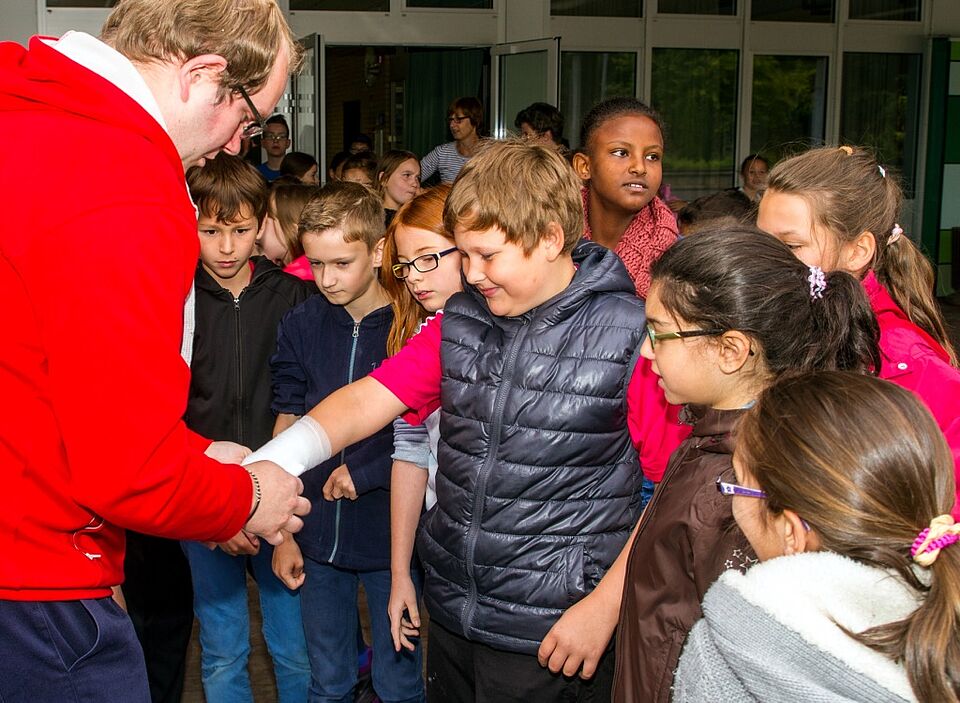 Ein weiterer wichtiger Nebenaspekt der frühen Beschäftigung mit dem Thema Erste Hilfe ist der Abbau von Ängsten, betont Simon Jägersküpper, ein Effekt, der bis ins Erwachsenenalter nachwirke. „Wer schon früh einmal einen Rettungswagen von innen gesehen hat und mit den Abläufen vertraut ist, hat auch später weniger Berührungsängste, wenn er selbst Erste Hilfe leisten muss oder aber sich selbst in einer Notsituation befindet.“ Traurig, aber wahr sei, so Jägersküpper, dass in Deutschland nur die wenigsten Erste Hilfe leisten könnten. Nicht zuletzt erhofft sich der Kreisverband von der Zusammenarbeit mit der Grundschule eine Nachwuchswerbung für das Jugendrotkreuz.