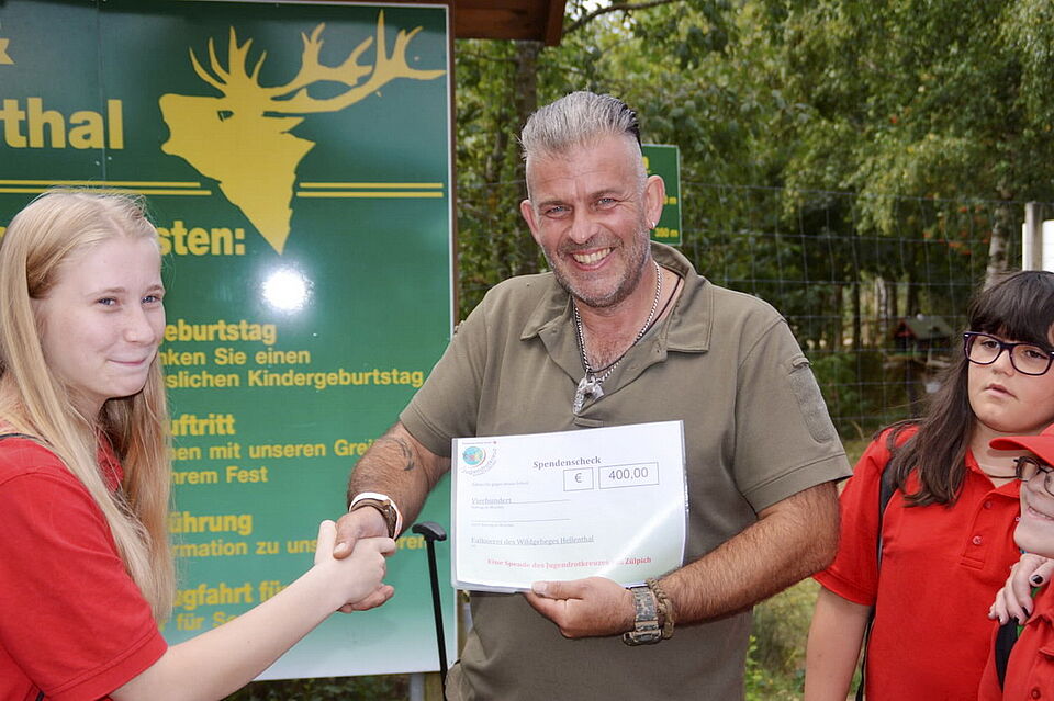 Der Erlös wurde jetzt der Greifvogelaufzuchtstation des Wildfreigeheges in Hellenthal übergeben. Jörg Niesters vom Management des Geheges dankte den römerstädtischen Kindern und Jugendlichen ganz herzlich für ihr Engagement.