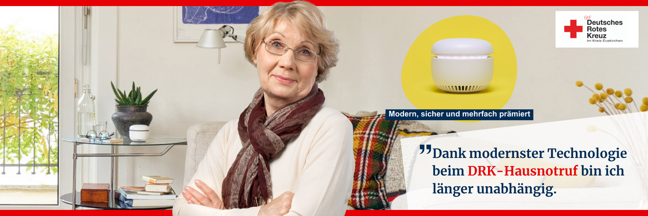 Sie möchten sicher und selbstbestimmt in Ihrer vertrauten Umgebung wohnen? Auch bis ins hohe Alter oder bei besonderen Gesundheitsrisiken? Dann ist es für Sie sicher beruhigend, wenn Sie wissen, dass im Notfall schnell fachkundige Hilfe kommt. Das DRK bietet Ihnen mit dem Hausnotruf Sicherheit und Geborgenheit in Ihren eigenen vier Wänden - rund um die Uhr. Mit ihm sind Sie zuhause nie allein.