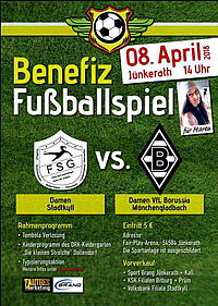 Am 08. April um 14 Uhr findet in Jünkerath eine Benefiz Fußballspiel zwischen der Profi Damen-Mannschaft VfL Borussia Mönchengladbach und der Damen-Mannschaft Stadtkyll statt.