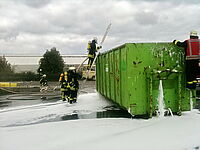 Am frühen Sonntagmittag brannte ein Müllcontainer im Euskirchener Industriegebiet. Das Rote Kreuz wurde mit dem Wechselladerfahrzeug zur Unterstützung der Feuerwehr angefordert.