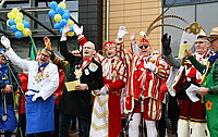 Klartext des Bürgermeister Dr. Hans-Peter Schick beim traditionellen „Sturm aufs Rathaus“ – Erster Beigeordneter Thomas Hambach schießt unfreiwillig die Lautsprecheranlage der angreifenden…