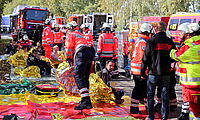 Riesige Katastrophenschutzübung im Bundeswehrdepot West am Standort Mechernich – Etwa 400 Teilnehmer – Bundeswehrfeuerwehr und zivile Kräfte sollten sich besser kennenlernen – Rotes Kreuz stellte…