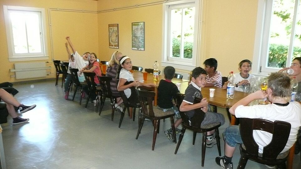 Im Anschluss machten die Kinder noch einen kurzen Abstecher in das neue Jugend-, Natur- und Umweltbildungshaus "Transit 59". Bei einer kühlen Erfrischung redeten sie noch einmal über das Erlebte. Die Jugendrotkreuzler freuen sich schon auf die Zukunft in Vogelsang und zeigten ihre Begeisterung abschließend bei einem lauten "3...2...1...Stimmung!"