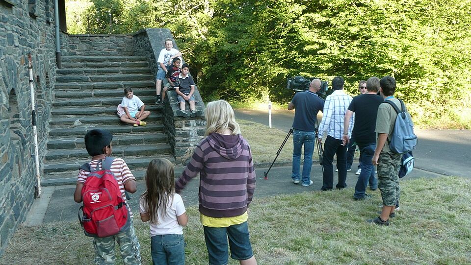 Vogelsang IP - 20 Jugendrotkreuzler aus Eukirchener Gruppen wirkten am vergangenen Montag als Statisten im neuen Vogelsang-IP Imagefilm mit. Sie spielten die Kinder, die in Zukunft die geplante Jugendherberge besuchen. Mit viel Spaß und Freude traten sie als Fußballspieler auf, entdeckten die Natur oder haben einfach nur gemeinsam gelacht und geredet.