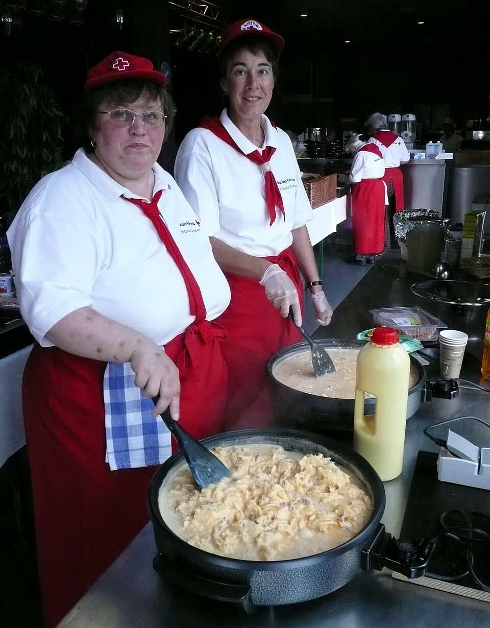 Auch Herzfeld ist begeistert von der Atmosphäre beim Blutspendemarathon. „Hier verabreden sich viele zum Blutspenden, sitzen danach noch beim reichhaltigen Büffet zusammen und unterhalten sich“, berichtet er. Oft kommen auch ganze Familien mit Kindern, denn für die „Pänz“ wird mit Kistenklettern der Bergwacht, Hüpfburg, Kinderschminken und weiteren Aktionen auch immer etwas geboten.