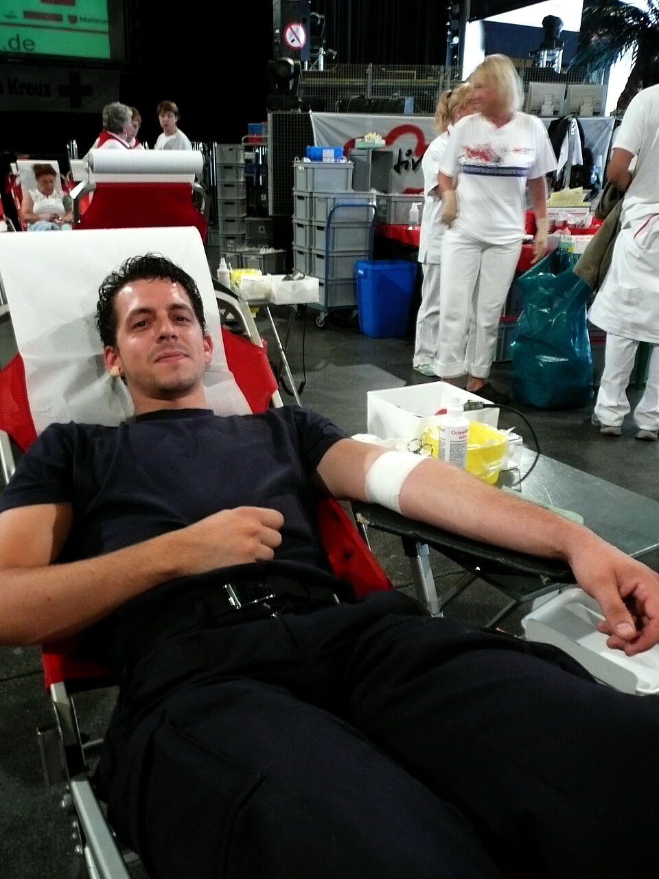 Die Tanz- und Veranstaltungshalle in der besonderen Atmosphäre des Blutspendemarathons zu erleben, war gerade für die jungen Spender, die die Tonfabrik sonst nur mit nächtlicher Diskobeleuchtung kennen, spannend. „Cool, endlich sehe ich alles einmal im Hellen!“, meinte die 19-jährige Katrin Kröll. André Kasper (21) wurde von seinem Chef angesprochen, doch zur Blutspende zu gehen – und freut sich, so helfen zu können.