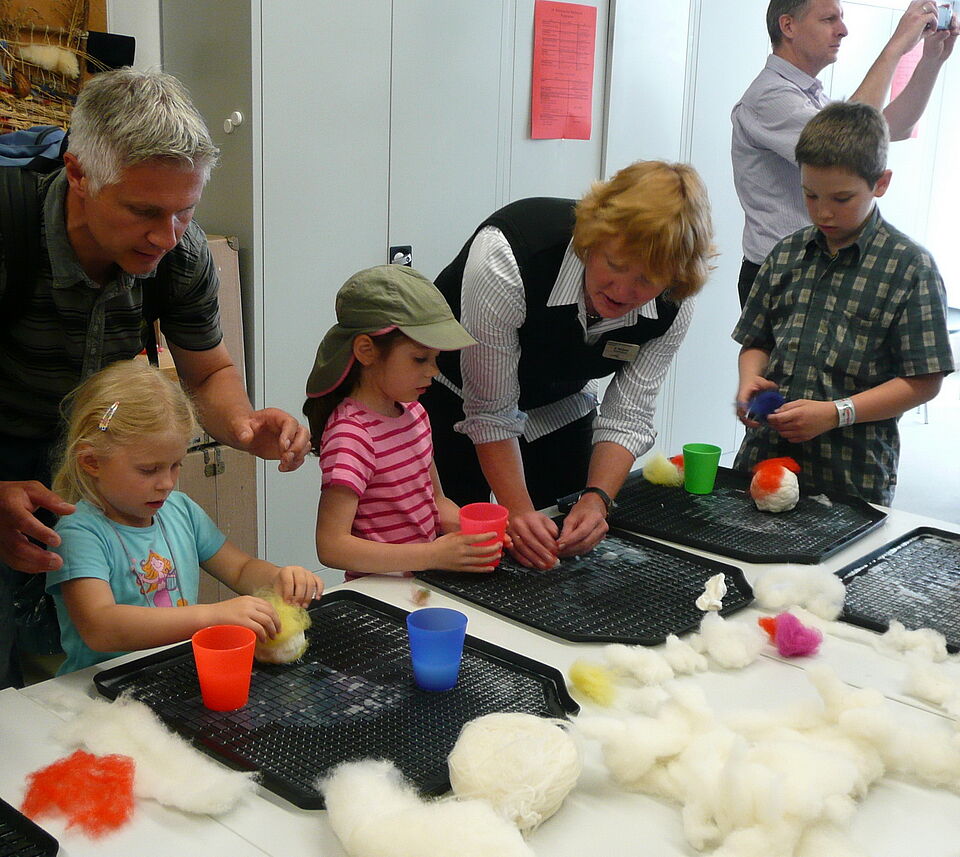 Während sich die Erwachsenen an den vielen Buden der Aussteller rund um die Wolle und Natur erfreuten, filzten die Kinder ihre eigenen Bälle oder ließen sich schminken. Die alle halbe Stunde stattfindenden Führungen durch die 1961 geschlossene Tuchfabrik mit ihren gut erhaltenen "Schätzchen" waren zur Freude der Initiatoren alle ausgebucht.