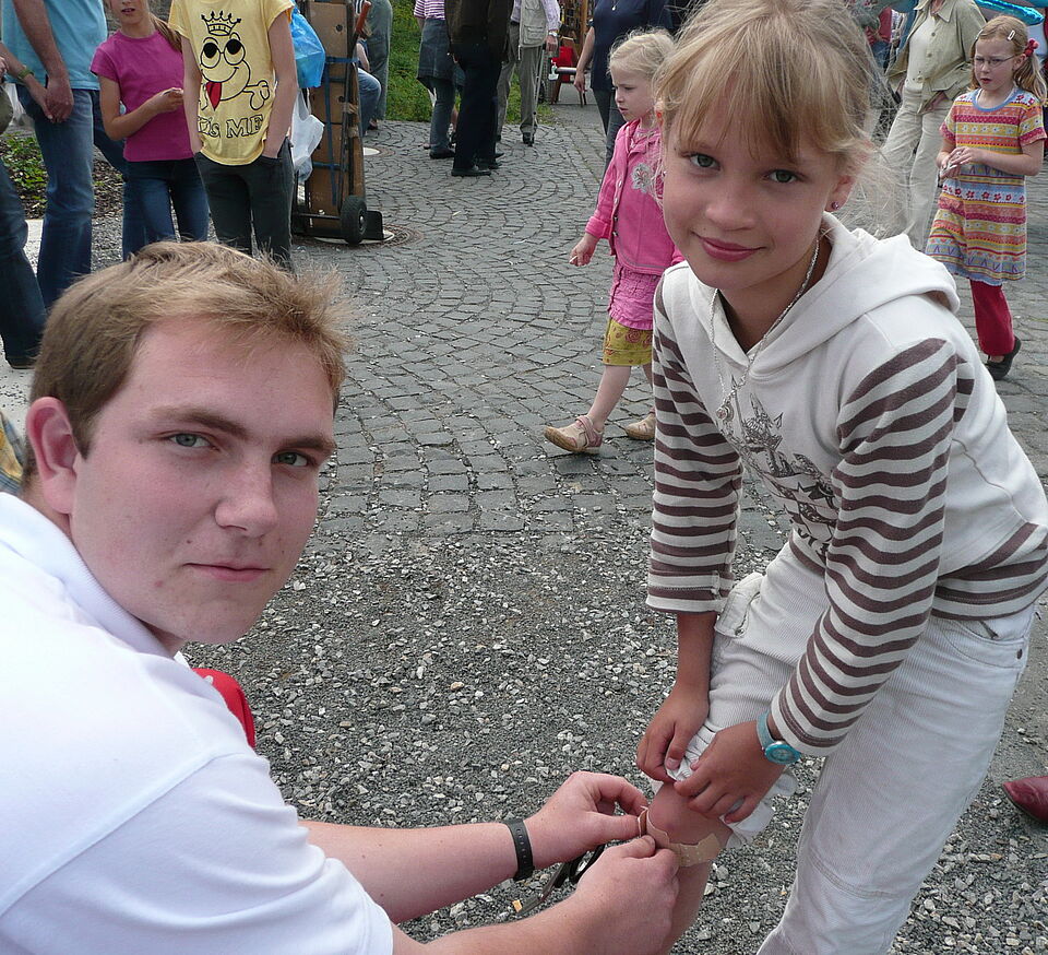 Als in dem Besucherstrom eine Mutter ihr Kind aus den Augen verlor, fanden die Helfer des Roten Kreuzes dieses, in guter Zusammenarbeit mit den Kameraden der Feuerwehr, zum Glück unbeschadet wieder und konnten es der besorgten Mutter zurückbringen.