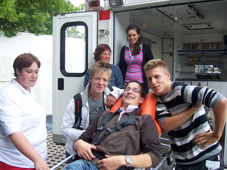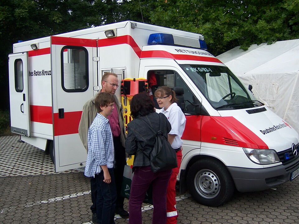 Aus diesem Grunde machten sich am frühen Samstagmorgen Marc Zietsch, Ramona Spranger und Anika Schmitz mit einem der Euskirchener Rettungswagen (RTW) auf den Weg nach Euenheim. Es dauerte nicht lange, bis der RTW dicht umdrängt war und viele Fragen beantwortet werden wollten.