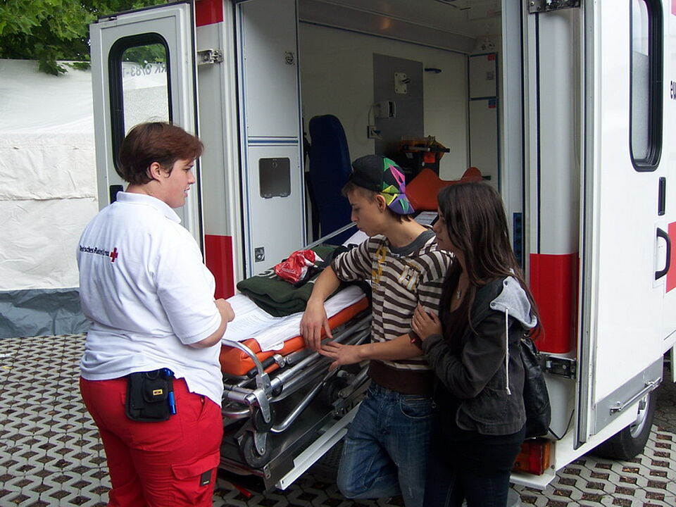 Darüber hinaus zeigten die drei Rotkreuzhelfer einige Handgriffe aus dem täglichen Dienst und konnten dadurch den einen oder anderen Einblick in die Tätigkeit als Rettungssanitäter(in) oder Rettungsassistent(in) gewähren.