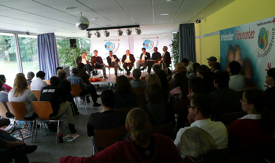 Bild DRK ZR | Die jugendlichen Gäste forderten die Teilnehmer der Podiumsdiskussion mit kritischen Fragen und Anregungen heraus.