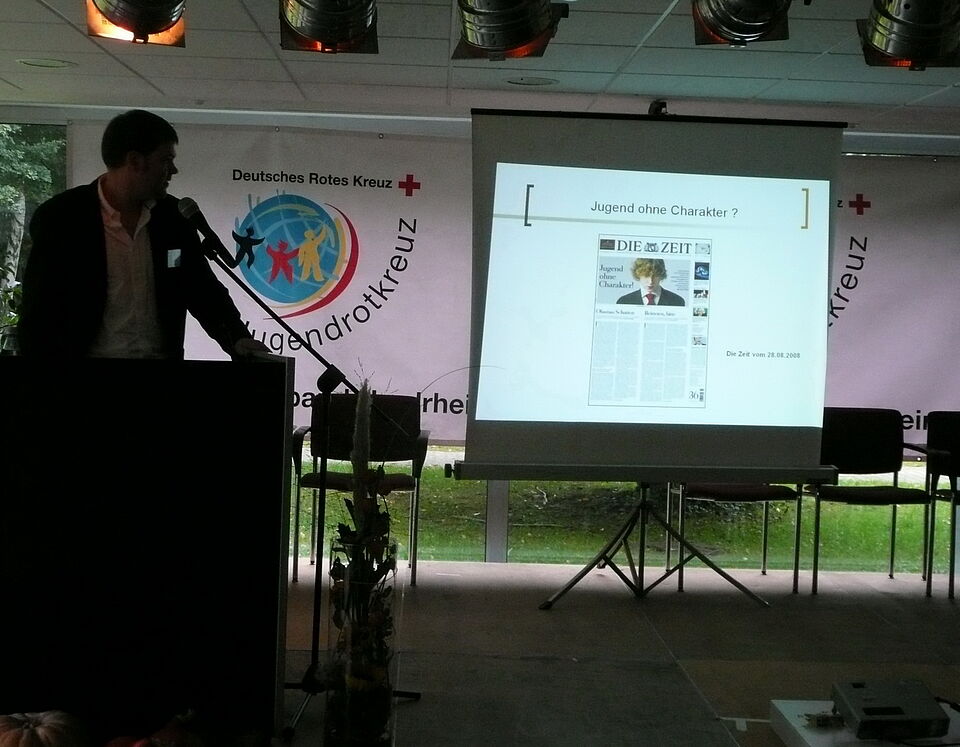 Bild DRK ZR | Am Ende seines Vortrags präsentierte er fünf Thesen zur "Jugendwelt". So zum Beispiel: "Jugendwelten sind charakterisiert durch: Konsum, Event, Medieneinflüsse und geringe Verbindlichkeit".