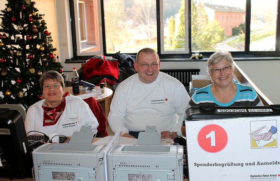 Neben sieben ehrenamtlichen Helfern der Münstereifeler Ortsgruppe, fünf Hauptamtlern und zwei Ärzten war auch die Rotkreuz-Blutspendebeauftragte im Kreis Euskirchen, Edeltraud Engelen, bis in die späten Nachmittagsstunden im Einsatz. Sie betreut ehrenamtlich rund 100 Spendetermine im Jahr und trägt unter anderem für das einheitliche Erscheinungsbild der Aktionen Sorge.