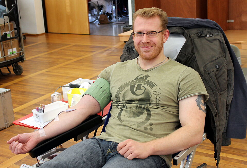 „Schwupps, war das Projekt auf den Weg gebracht“, erzählte Dylla-Krebs lachend. Die engagierte Hochschulleiterin nahm Kontakt mit den Verantwortlichen vom Blutspendedienst West auf und bekam umgehend grünes Licht. In einer schriftlichen Umfrage bekundeten wenig später weit über 100 Studenten ihr Interesse an einer Blutspende. Dylla-Krebs überlies nichts dem Zufall, zurrte das Vorhaben fest und erstellte eine verbindliche Liste, in der sich Studenten wie Dozenten zu einer konkreten Uhrzeit auf eine bestimmte Liege eintragen konnten. Am Veranstaltungstag selbst wurde die Zahl der geplanten Entnahme- und Ruhestätten kurzfristig noch einmal erhöht. Hausmeister Rolf Behrend schuf dann nicht nur die logistischen Voraussetzungen für einen reibungslosen Ablauf in der großen Aula, sondern nahm überdies als erster Spender auf der Liege Platz.