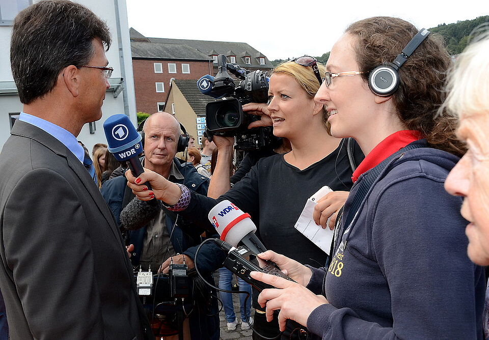 Der Platz vor dem Handwerkerzentrum, dem Neubautrakt des City Outlet Bad Münstereifel am Orchheimer Tor, war dicht an dicht mit Menschen bestanden. Die Römische Glashütte, in der eine Pressekonferenz anberaumt war, platzte aus allen Nähten. Aber auch in den Straßen und Läden der City herrschte reger Publikumsandrang und geschäftiger Betrieb.