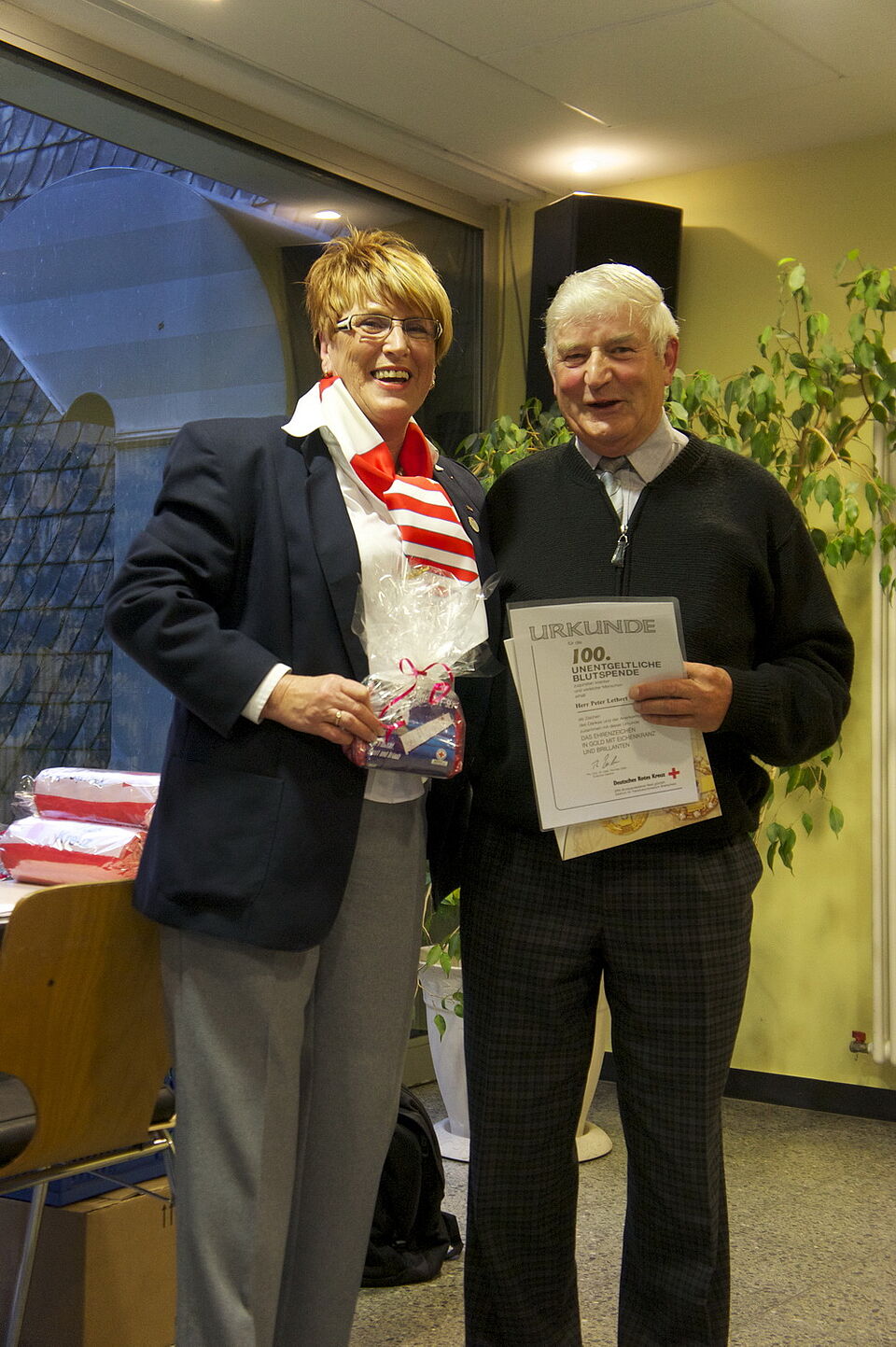 Bad Münstereifel - 1100 Blutspenden, das sind über 500 Liter Blut. Für diese besondere Leistung wurden im September 2013 zwanzig Frauen und Männer aus Bad Münstereifel und Umgebung geehrt. Geehrt wurden für 25 unentgeltliche Blutspenden: Anita Lingscheid, Paul-Josef Neu, Wilhelm Schmitz, Andrea Hoever, Karin Nett, Robert Beier, Ralf Menke und Elke Pardemann.50 mal gespendet haben: Hans-Peter Fries, Werner Kramer und Britta Cölle.75 mal spendeten: Helena Schmidt, Vera Christina Schlößer, Hans Werner Reinartz, Johannes Nücken, Ralf Bungart und Heribert Peter Fussen.100 Spenden erreichten: Hubert Ginster, Jens Winter und Peter Lethert.