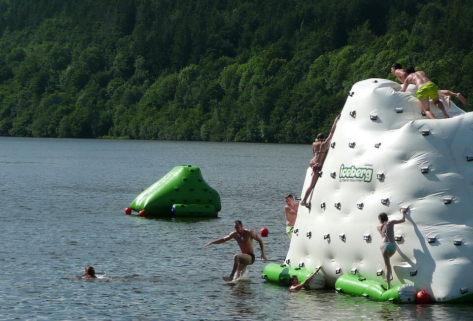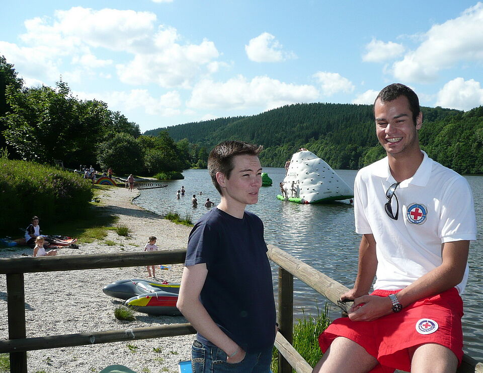 Bild DRK ZR | Die Dahlemer Wasserwachtler auf ihrer Wachplattform am Kronenburger See.