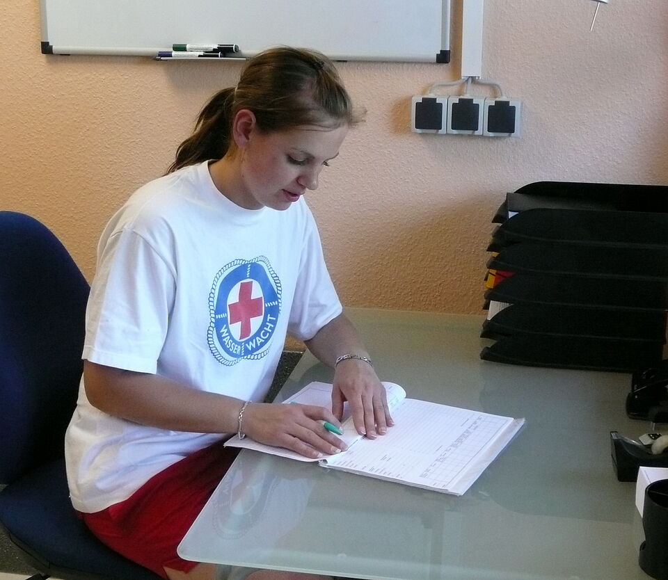 Bild DRK ZR | In der neuen Wachstation schreibt Petra Dederichs noch den Tagesbericht.