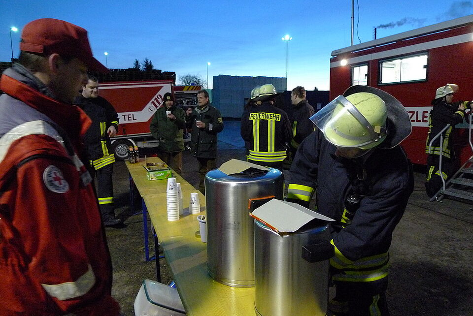 Bild DRK EU | Bei einem Hausbrand in Dahlem unterstützen die Dahlemer Rotkreuzler die Feuerwehren mit heißen Getränken.