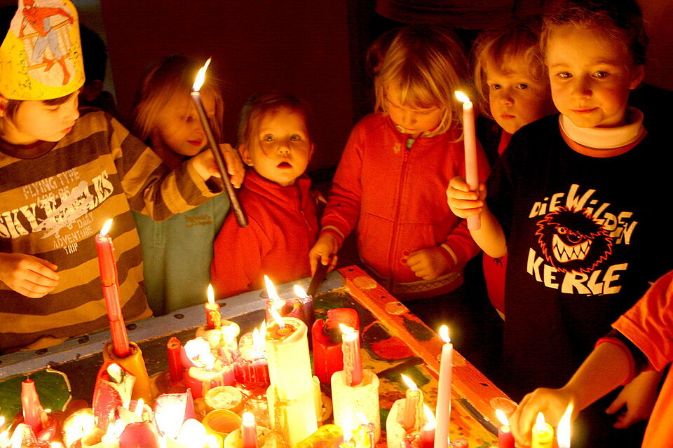 Bild DRK | Die 40 Kinder der Kindergartenstätte Schleiden/Gemünd feierten eine "Stümpchenparty", bei der restliche Kerzen und Gebäck von Weihnachten aus den Familien aufgebraucht wurden. Die originelle Idee traf auf eine tolle Resonanz, die Kinder waren sehr freudig mit Verwertung der Reste bei der Sache.