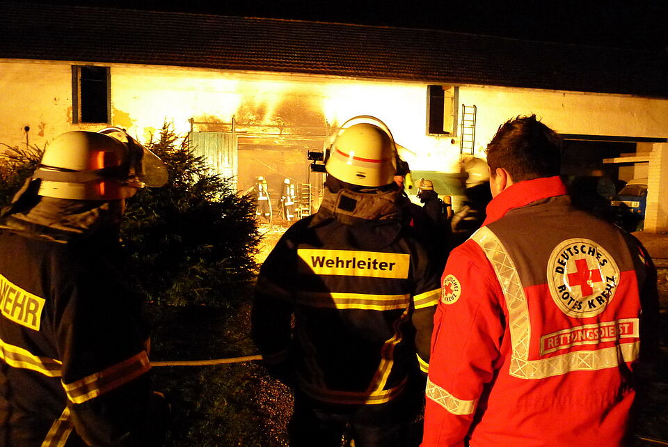 Bild DRK | Bei einem Brand auf der Burg Kessenich war zur Sicherheit der Feuerwehr auch das Rote Kreuz dabei. Der Brand konnte schnell gelöscht werden und es kamen keine Personen zu Schaden.