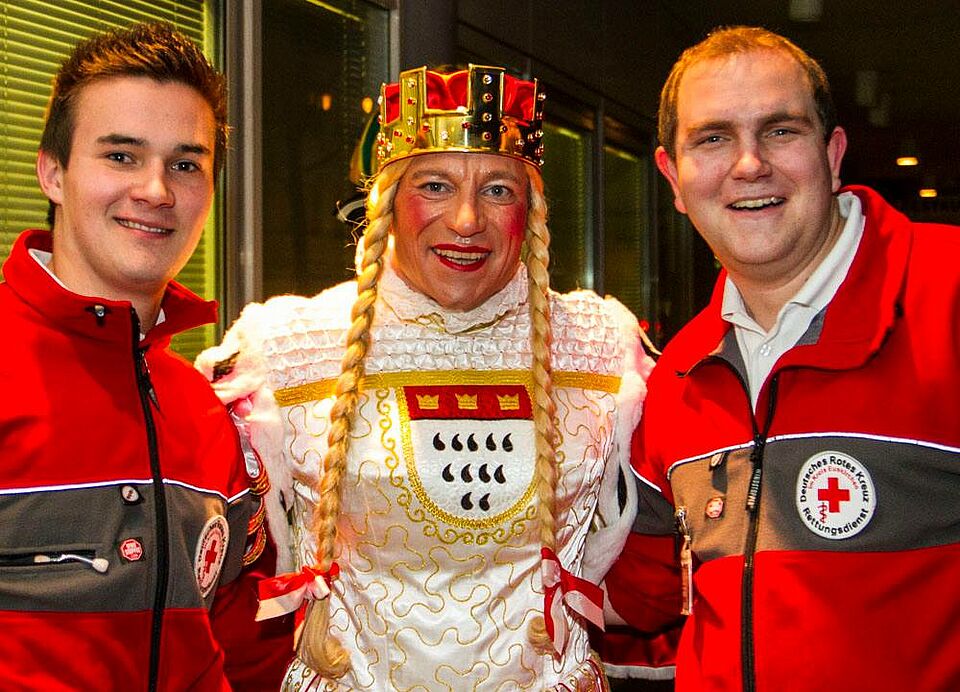 Bild DRK SM | Euskirchen - Bei der Prinzenproklamation waren auch ehrenamtliche Rotkreuzler vor Ort, um die Sicherheit der Gäste sicherzustellen. Wie man sieht, fehlte es auch am nötigen Spaß an der Sache nicht.