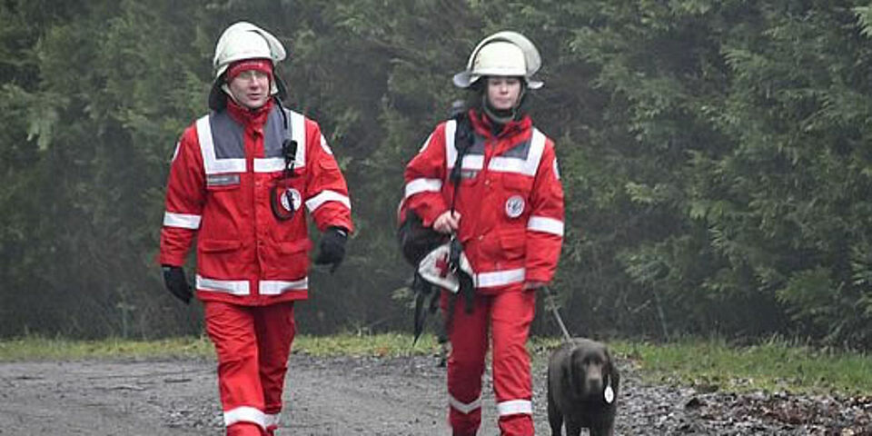 Bild DRK KF | Simmerath - Durch viele erfolgreiche Einsätze bekannt, gelang es dem Rettungshund Tristan (hier auf dem Bild mit seinem Frauchen Monika Artz) nun erneut, einen gesuchten Mann ausfindig zu machen.