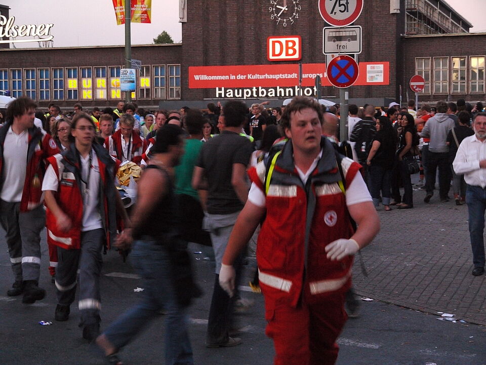 Bild DRK | 60 Rotkreuzler aus dem Kreis Euskirchen waren bei der Loveparade in Duisburg im Einsatz und kümmerten sich um Verletzte und Betroffene.