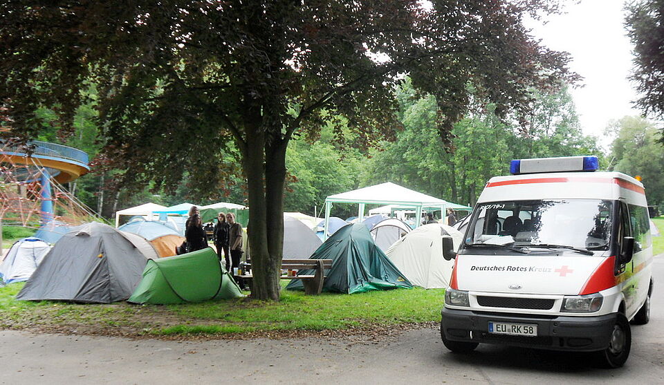 Bild DRK SM | Mechernich - Beim "Hard'n'Heavy's Summernight Open Air"-Festival begleitete eine Mannschaft von elf Rotkreuzlern die etwa 1200 Besucher. Glücklicherweise gab es nur kleinere Notfälle wie Kreislaufbeschwerden oder leichte Sturzverletzungen, bei denen sie helfen mussten.