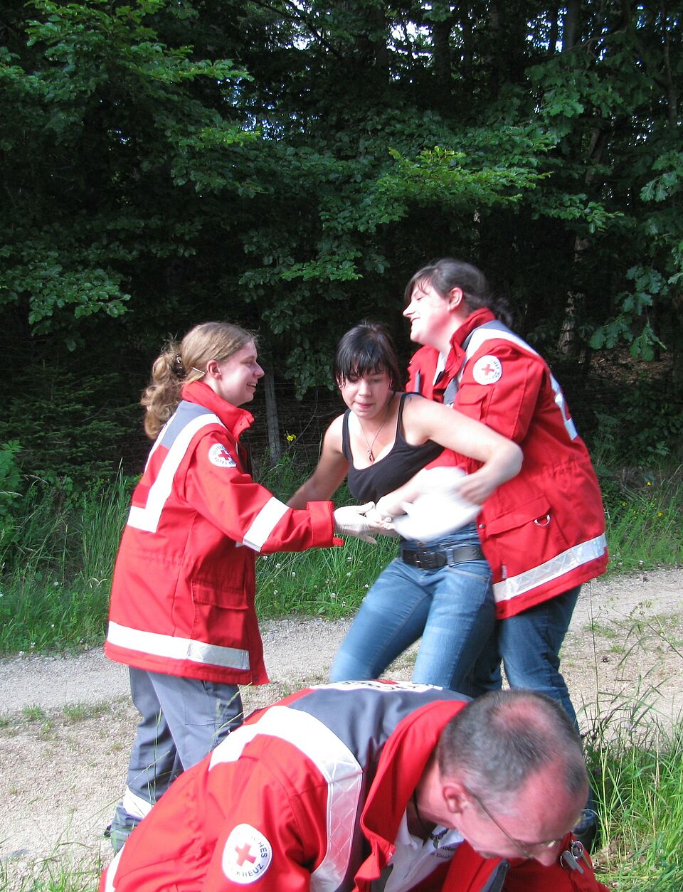 Bild DRK TS | Dahlem - Eine gemeinsame Übung mit Jugendrotkreuz und Bereitschaft machte allen gleichermaßen Freude. Die Weitergabe von Kenntnissen zu Lebensrettenden Sofortmaßnahmen kann so am besten funktionieren.