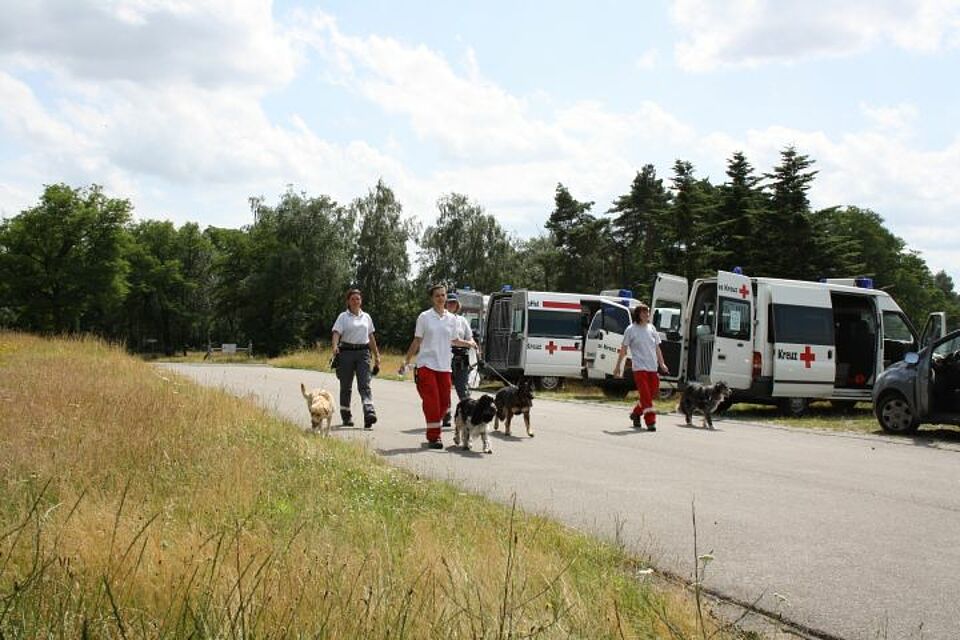 Bild DRK RM | Teveren - Zum „Sommerfest 2012“, einer gemeinsamen Ausbildungsveranstaltung, trafen sich die Rotkreuz-Rettungshundestaffeln des Landesverbandes Nordrhein. Zusätzlich wurden viele Aktionen für Mensch und Tier angeboten und es wurde gemeinsam gegrillt.