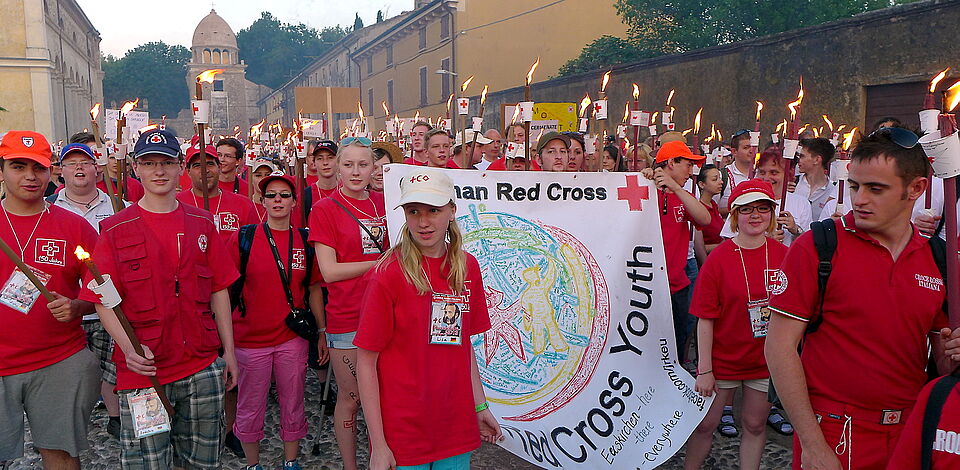 Bild DRK EU ZR | Solferino - 37 Rotkreuzler nahmen an der „Fiaccolata“ teil, einem Fackelzug, der alljährlich an die Ursprünge des Roten Kreuzes erinnern möchte. Gerade hier kann man merken, dass man als Rotkreuzler nicht allein ist, weil viele Menschen aus allen möglichen Ländern an diesem Ereignis teilnehmen.