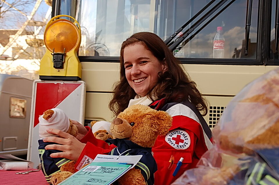 Bild DRK EU | Die Aktion "Kindertränen trocknen" wird auch auf der Euskirchener Kirmes gut angenommen. Hier bereitet Sabine Acker aus Zülpich gerade die nächsten "Patienten" vor.