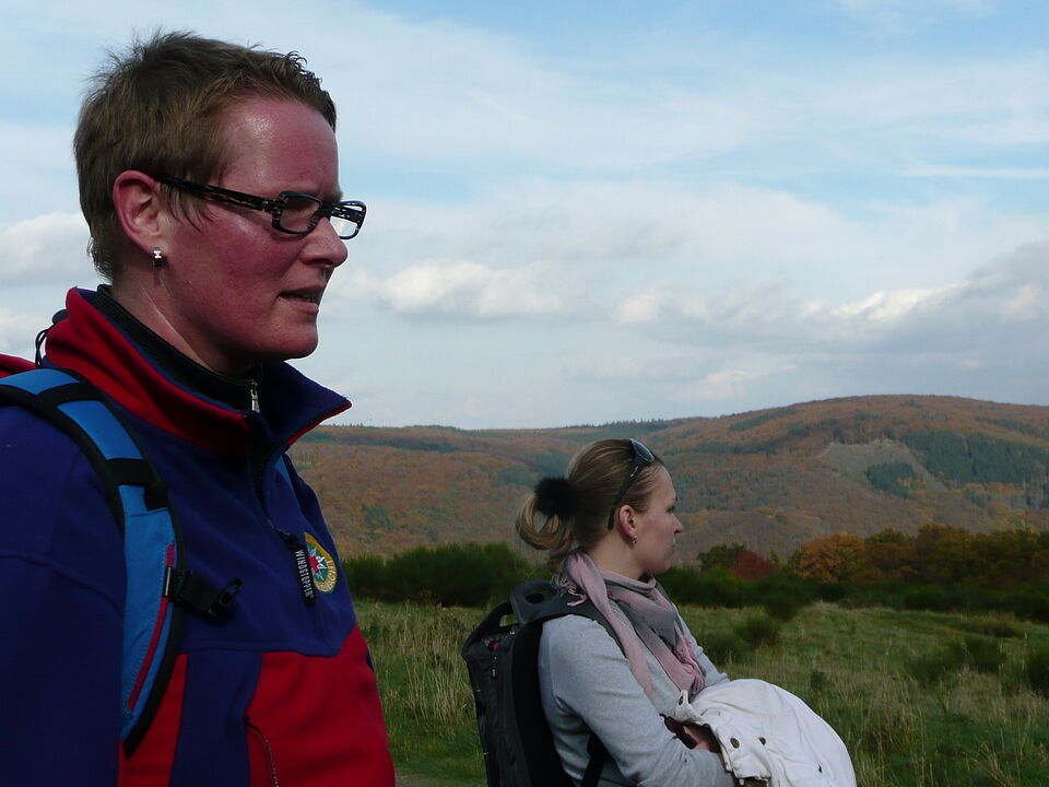 Bild DRK ZR | Die Biologin Dr. Barbara Roitzheim, Naturschutzreferentin der Rotkreuz-Bergwacht, begleitet Studenten aus aller Welt durch den wunderschönen Nationalpark Eifel.